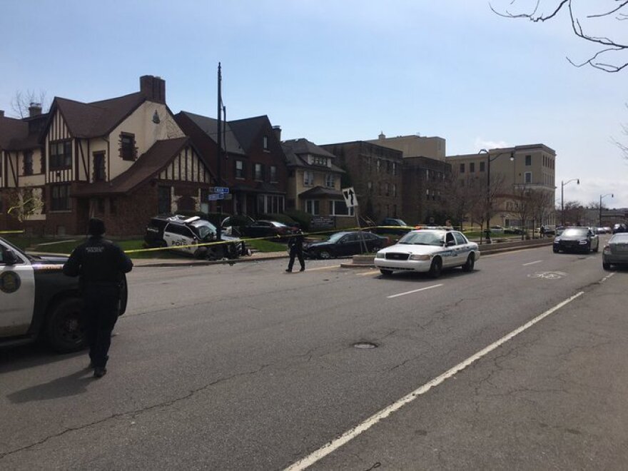 A Buffalo police officer was responding to the high-priority call with lights flashing on his patrol vehicle when he collided with another vehicle on Main Street near Benwood Avenue.