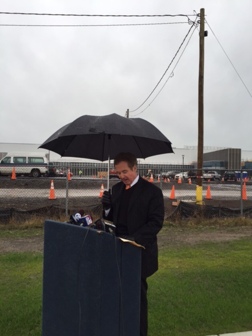 "Green renewable energy is something that's not unique to Buffalo and Western New York," Higgins said. He was speaking in front of the massive Solar City building site in South Buffalo.