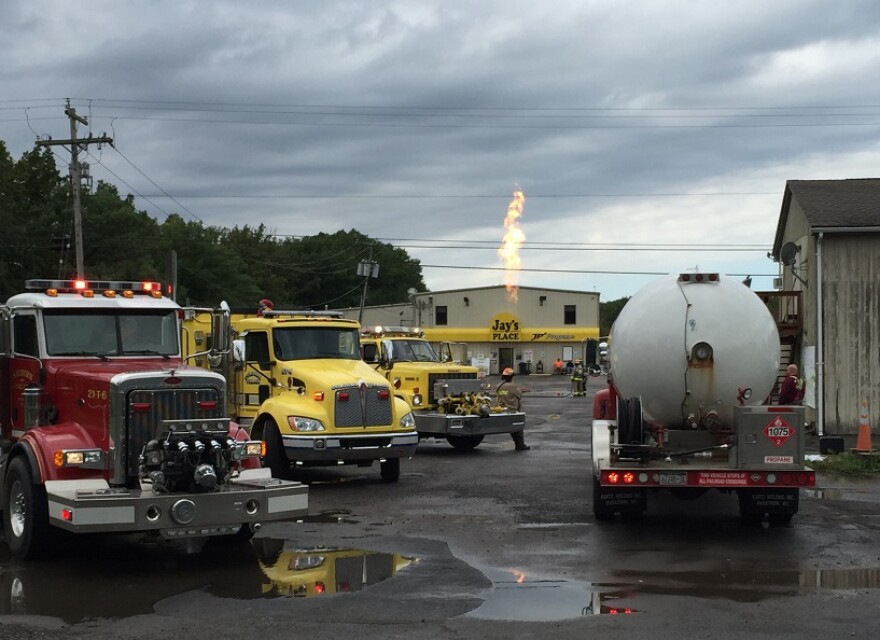 Jonathan Schultz, Niagara County's Director of Emergency Services, credits the business with taking quick action to remove the contents and reduce the danger. Once the liquid propane was transferred out of the tank, the remaining contents - vapors - were expended by a controlled burnoff.
