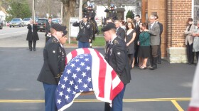 Dozens of flag-bearing Patriot Guard Riders on motorcycles led a lengthy funeral procession for Sgt. Brett Gornewicz in Alden Monday. Gornewicz, 27, was…